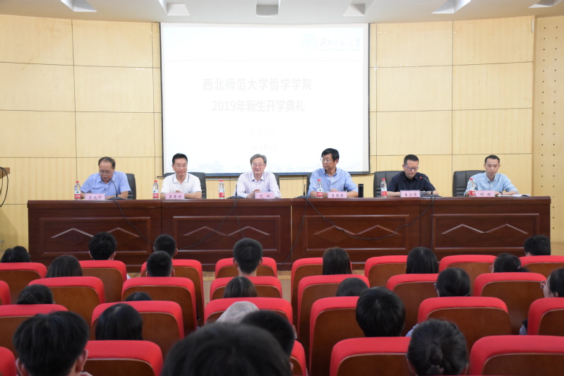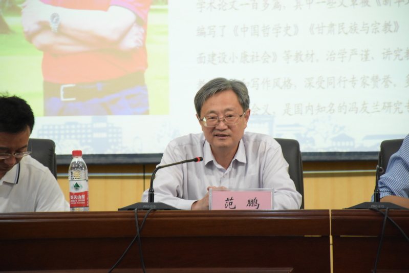 甘肃省人大常委会教科文卫工作委员会主任、学院兼职硕士生导师范鹏教授在主题发言中指出,作为哲学专业的学生,要深刻理解哲学之道、大学之大的内涵,要学会用哲学的眼光看世界,用哲学的思维分析问题,并以冯友兰的哲学思想对人们的影响为例,阐述了学习哲学的意义。范鹏教授以北宋哲学家、教育家、北宋理学的奠基者程颢的诗词《秋日偶成》勉励学生学好哲学、用好哲学。范鹏老师用他自己爱哲学、学哲学、用哲学、成就人生的现身说法,对哲学专业新生如何全面成长、全面成人、全面成才提出了良好的建议和殷切的期望。