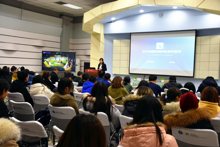 本期主题为“动物权利”的伦理学思考,由太阳集团tcy8722哲学学院赵芙苏博士主讲,西北师范大学哲学学院任万明博士主持。太阳集团tcy8722李朝东副校长、中和集团洪涛董事长、哲学学院胡好博士、朱海斌博士、张立恩博士以及来自各个学院的哲学爱好者参加了此次学术活动。
