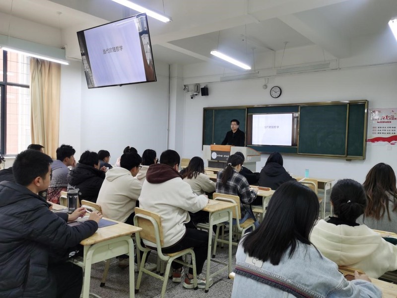 2023年3月7日上午,学校党委常委、纪委书记、监察专员马庆,教学质量监控处处长宋鹏飞深入我院教师课堂听课,朱海斌副教授为2020级哲学本科班讲授《当代欧陆哲学》课程,学院负责人一同参加听课。