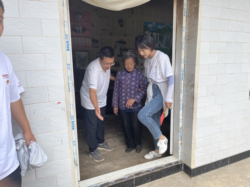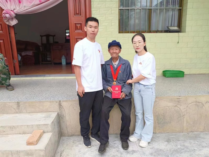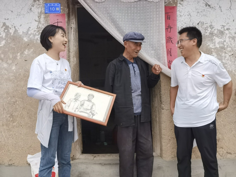 学院党总支副书记张建清和学校机关部门的郭小军、颉东凤三位老师在甘山村开展对口帮扶工作,对村里的情况非常了解。8月15日,在三位老师和村委会的带领下,实践队员们走进退伍军人、老党员和孤寡老人家中开展学习慰问工作,亲身感受他们的日常生活。