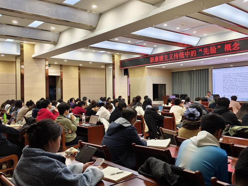 首先,石福祁教授从科亨、纳托普与卡西尔的具体“先验观点”出发,指出新康德主义的“先验”需要回归康德的立场,即指向可能性的条件。然而,关于“可能性的条件究竟为何物”的探究,成为康德与新康德主义之间的重要分水岭。其次,石教授进一步阐明,理解符号概念是把握卡西尔哲学思想的关键。他区分了“人为的”和“自然的”符号,提出“知识现象学是探寻使每一种知识(符号形式)成为可能的条件”,这正是卡西尔对先验方法的具体运用。此外,石福祁教授还详细且深刻地解答了学生们提出的问题,包括“在卡西尔的‘精神展开自身’过程中,人的作用和最终归宿是什么”以及“科亨和纳托普对哲学的不同解释(体系与线索的区别)是否存在矛盾”等。