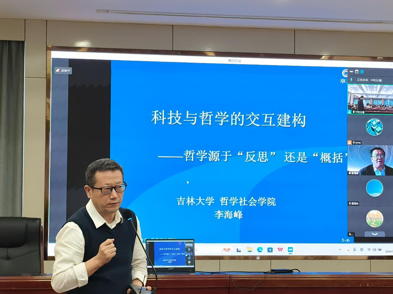 11月18日,“中和论道”第115期在tyc8722太阳集团城4楼报告厅举行,本期讲座主题为“科技与哲学的交互建构 哲学源于‘反思’还是‘概括’”,由吉林大学哲学社会学院李海峰教授主讲,姜宗强教授担任与谈人,王珅副教授主持。讲座吸引了校内外诸多师生线上、线下热情参与。