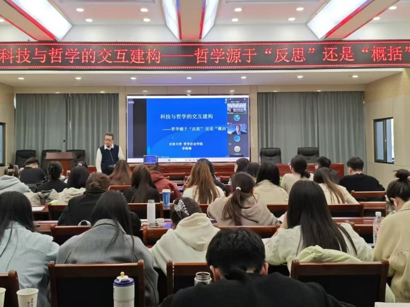 11月18日14:30 - 17:30,中和论道第115期学术讲座如期开展,吉林大学李海峰教授以《科技与哲学的互构:哲学源于“反思”还是“概括”》为题为我院师生作学术讲座,在场师生围绕科技哲学前沿深入探讨,思想的火花在会场上空碰撞交织。