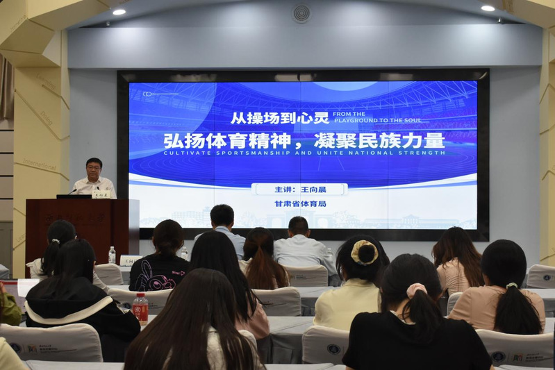 最后,围绕当代大学生如何践行体育精神,王向晨局长表达了自己的期望与愿景,并向青年学子提出三点希望:一是希望大家成为“传承者”,积极践行并传播体育精神;二是希望大家当好“带头人”,踊跃参与体育锻炼,带动身边人共同参与;三是希望大家争做“实干家”,积极推动甘肃体育加快发展。他欢迎广大学子关注体育事业、支持体育工作,为甘肃体育发展建言献策、加油助威。同时鼓励大家在毕业后,若条件符合,可报考体育系统各级机关单位和事业单位,或通过创业等方式投身全省体育事业的改革发展,共同为把甘肃建设成为具有西部地域文化特色的体育强省而努力奋斗。